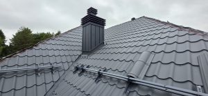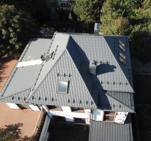 Конструктивными особенностями кровли являются наличие мансардных окон. В данном случае их 7 штук. Отдельное внимание мы уделили и отделке дымоходов. Перед укладкой кровельного покрытия, бригада «Уникдом» выполнила работы по комплексной реконструкции кровли, в процессе которой была усилена и нарощена стропильная часть (на 50 мм), произведены работы по утеплению с применением материала толщиной 200 мм.